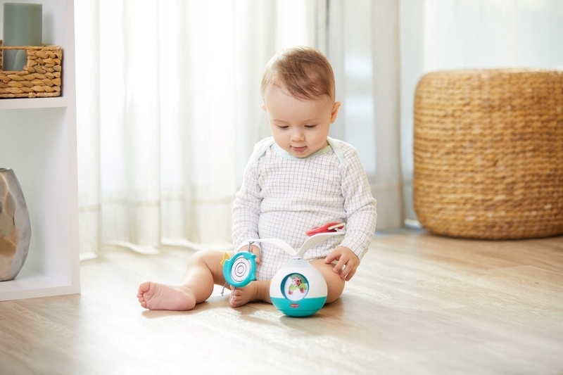 Umieść karuzelkę w odpowiedniej odległości od dziecka (około 25 cm) i pozwól mu cieszyć się angażującym dźwiękiem i ruchem w pozycji na brzuszku, pomagając mu stopniowo pozostawać w tej pozycji nieco dłużej. Kiedy wychodzisz z domu, zabierz ze sobą karuzelkę, aby dziecko mogło cieszyć się komfortem znanej mu zabawki.