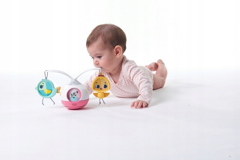 Umieść karuzelkę w odpowiedniej odległości od dziecka (około 25 cm) i pozwól mu cieszyć się angażującym dźwiękiem i ruchem w pozycji na brzuszku, pomagając mu stopniowo pozostawać w tej pozycji nieco dłużej. Kiedy wychodzisz z domu, zabierz ze sobą karuzelkę, aby dziecko mogło cieszyć się komfortem znanej mu zabawki.