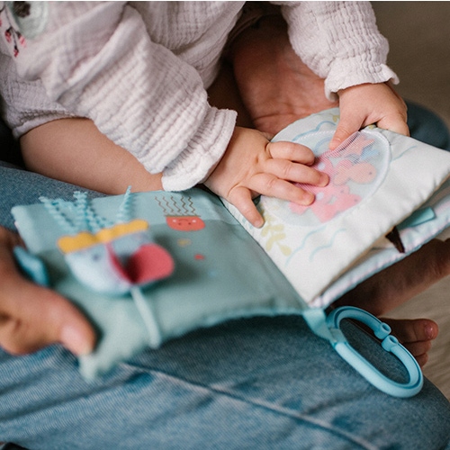 Książeczka sensoryczna Sea World odkryje przed dzieckiem fascynujący podwodny świat. Stymuluje rozwój sensoryczny malucha od pierwszych dni życia. Różne materiały i faktury pobudzają zmysł dotyku. Tkaniny takie jak filc są miękkie i bezpieczne. Zachowują trwałość nawet przy intensywnej zabawie. Odczepiane rzepy i ukryte elementy wzbudzają ciekawość pociechy oraz zachęcają do samodzielnego odkrywania. Rozwijają koncentrację i logiczne myślenie.
