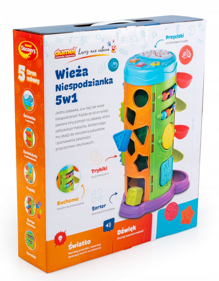 DUMEL WIEŻA ZJEŻDŻALNIA SORTER NIESPODZIANKA 5W1 MUZYKA ŚWIATEŁKA 18M+
