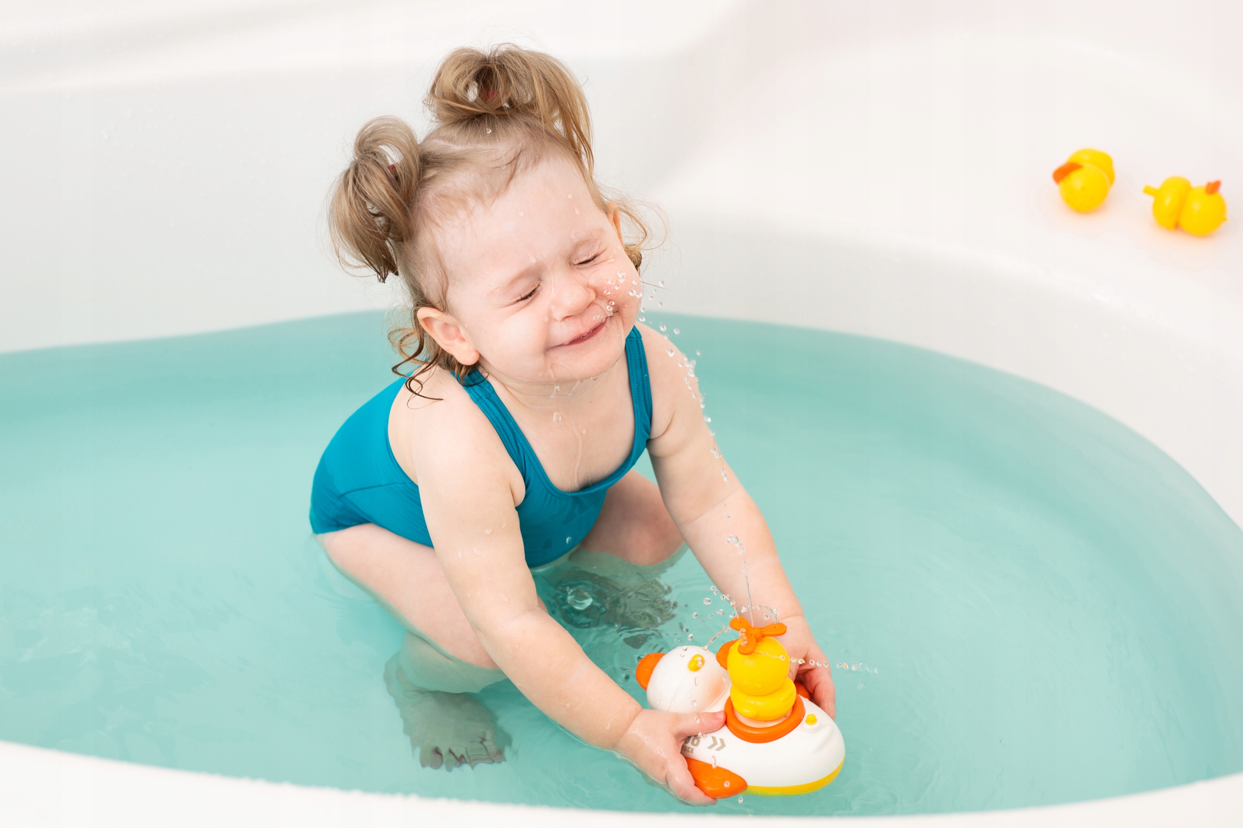 • 7 możliwości zabawy z użyciem dołączonych akcesoriów: kacza fontanna, kaczy wiatrak, kacza eksplozja, mżawka, deszcz, odlotowy prysznic, obrotowy prysznic;
