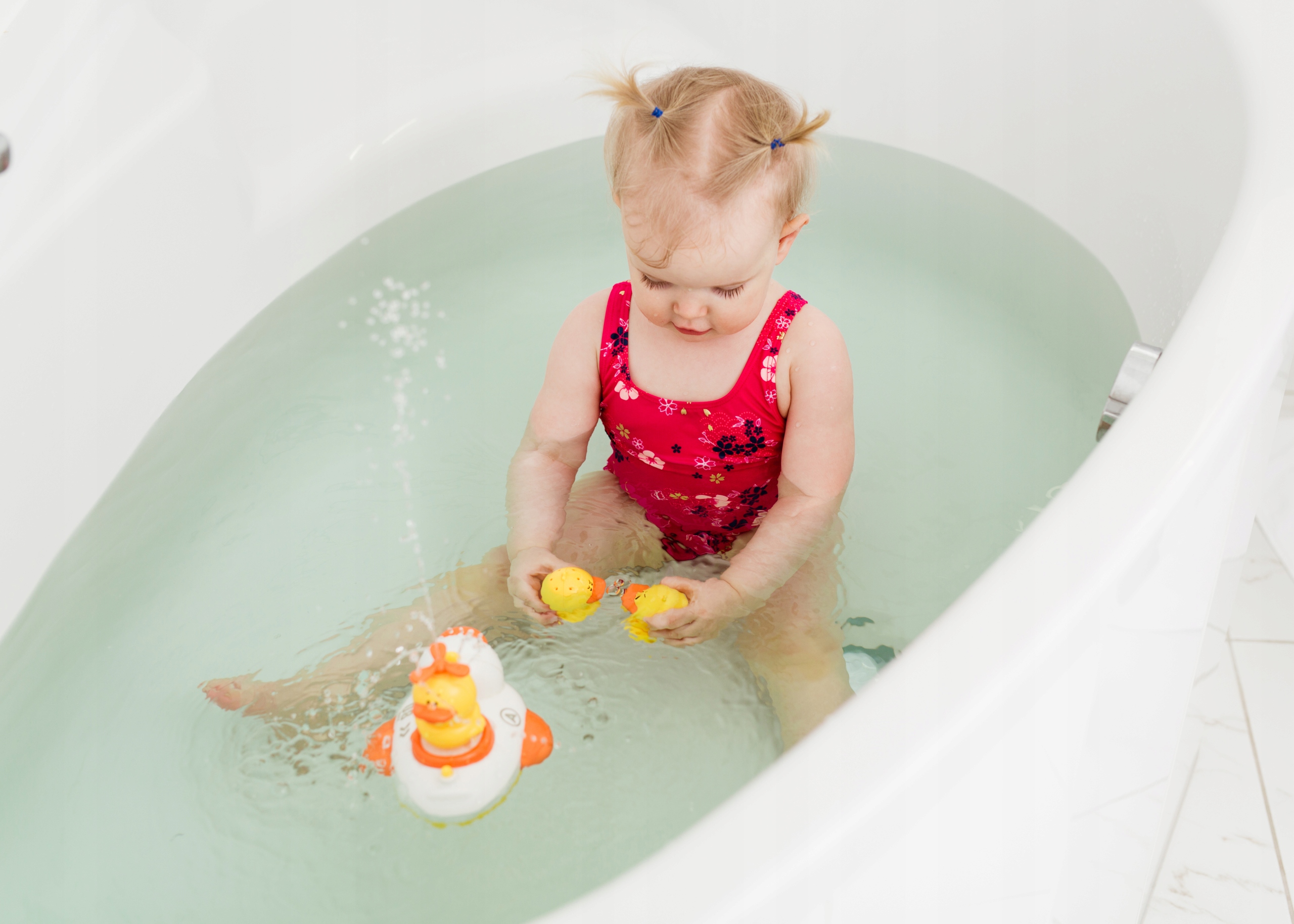 • zabawka wyposażona jest w przyssawki, umożliwiające przymocowanie jej np. do ściany wanny;