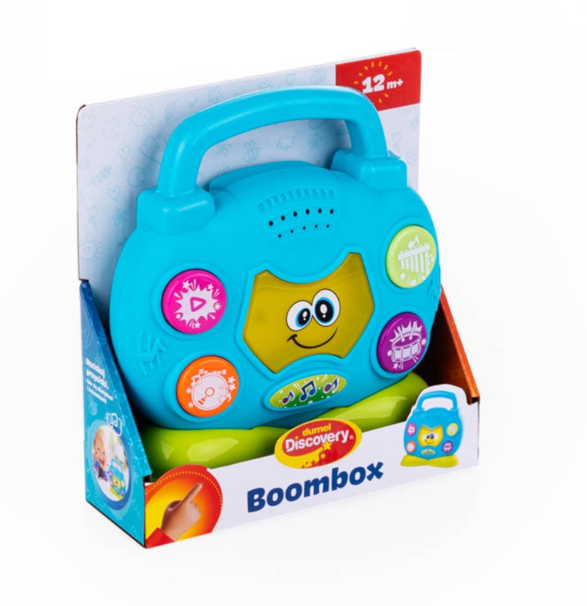 Uśmiechnięty boombox odtwarza melodię, posiada także 3 tryby dźwięków: ksylofon, perkusję lub muzykę klasyczną.