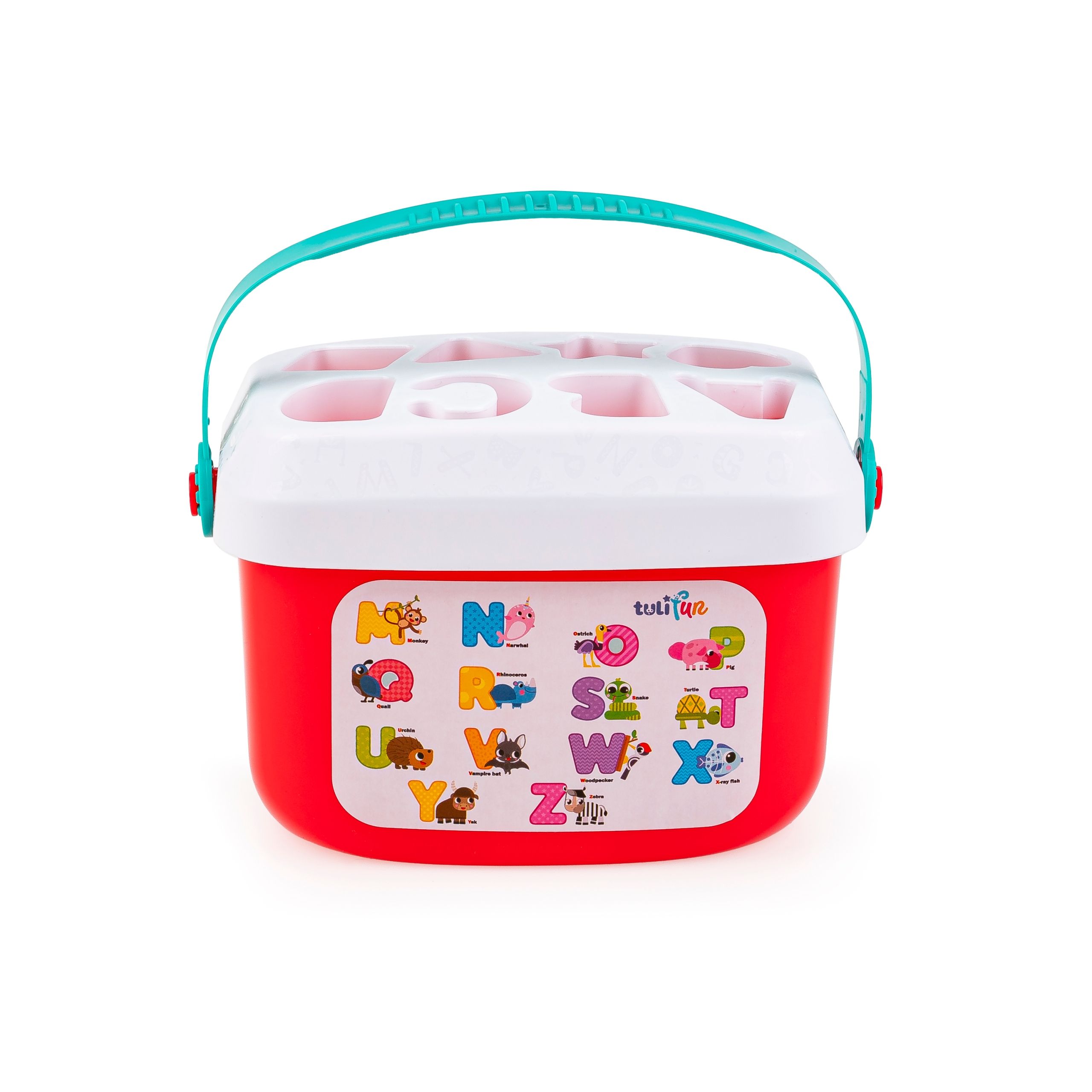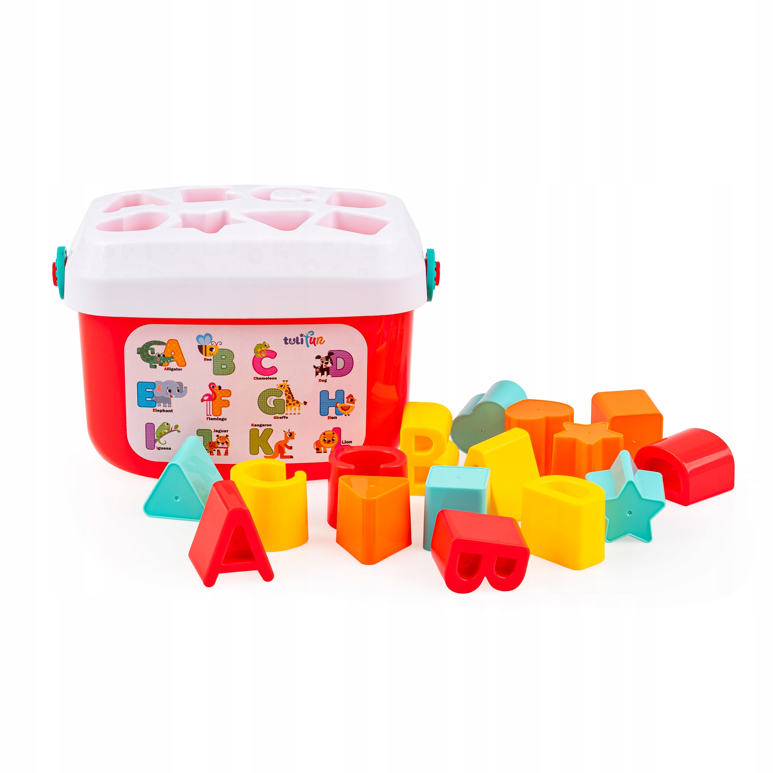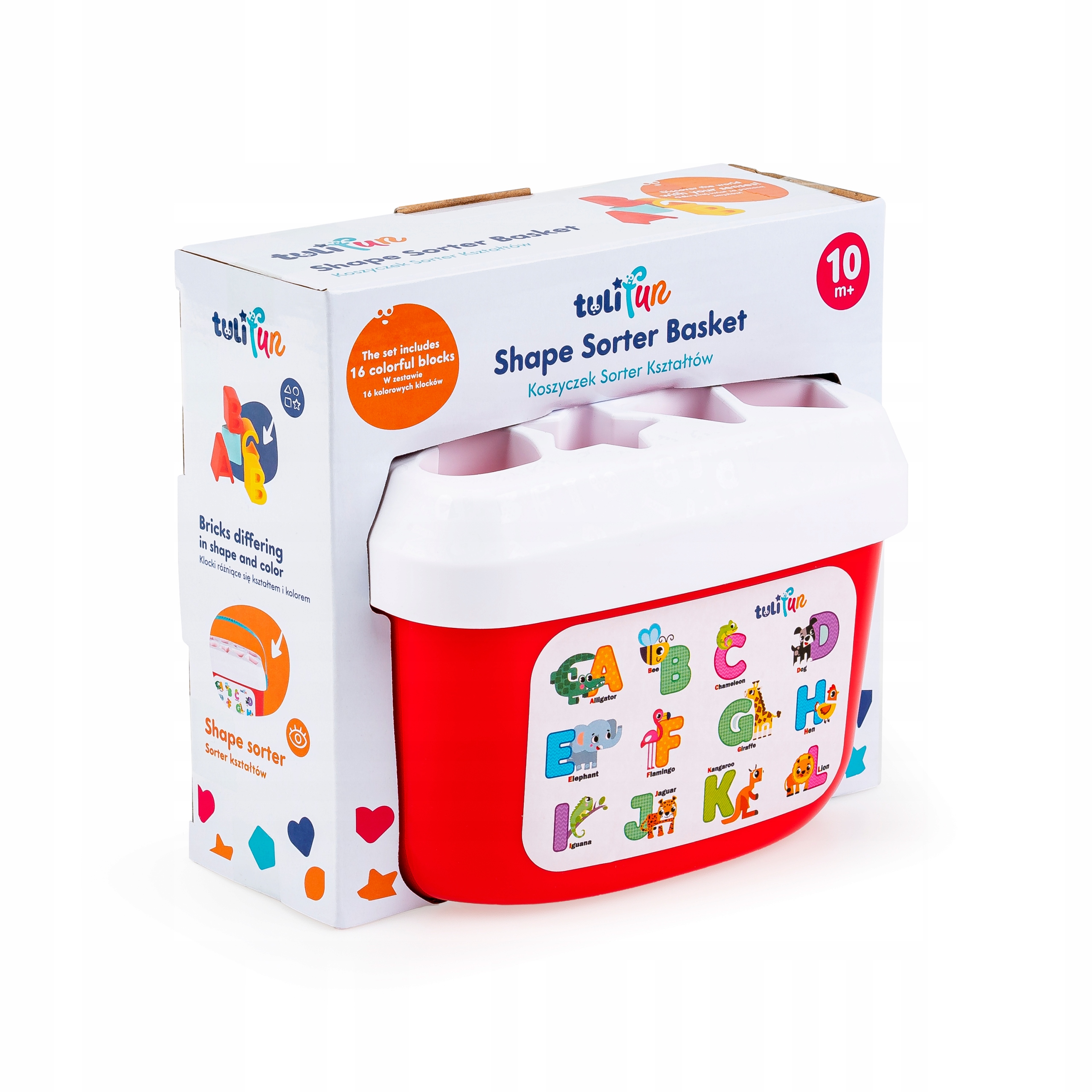 Z koszyczkiem pełnym klocków poznasz pierwsze literki i podstawowe figury, a to wszystko podczas zajmującego zajęcia, jakim jest sortowanie klocków. Wyjmij klocki z koszyczka, nałóż na niego pokrywkę z sorterem i dopasuj wszystkie klocki do odpowiadających im otworów. Kiedy uporasz się z tym zadaniem, wystarczy, że wysypiesz klocki z koszyczka, aby rozpocząć zabawę od nowa. Koszyczek posiada praktyczny uchwyt, co ułatwia jego przenoszenie.