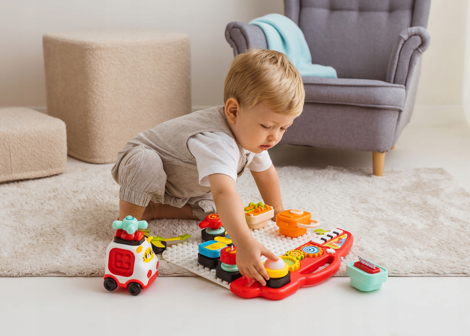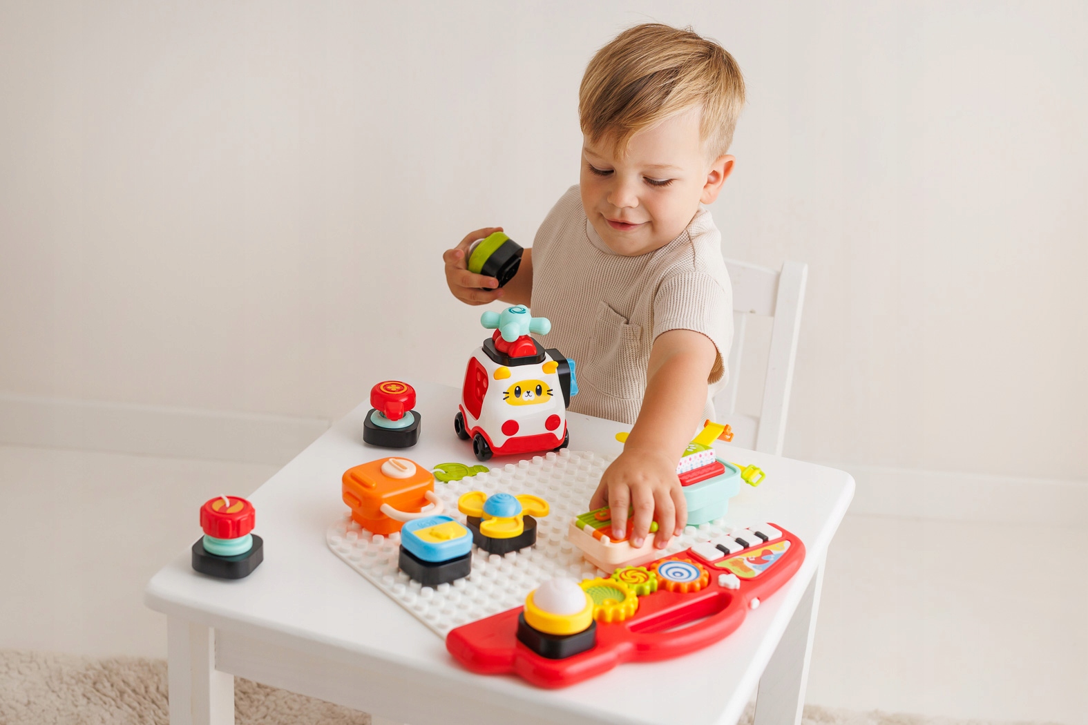 ✔ Interaktywna zabawa: przyciski, elementy do przekręcania i przesuwania