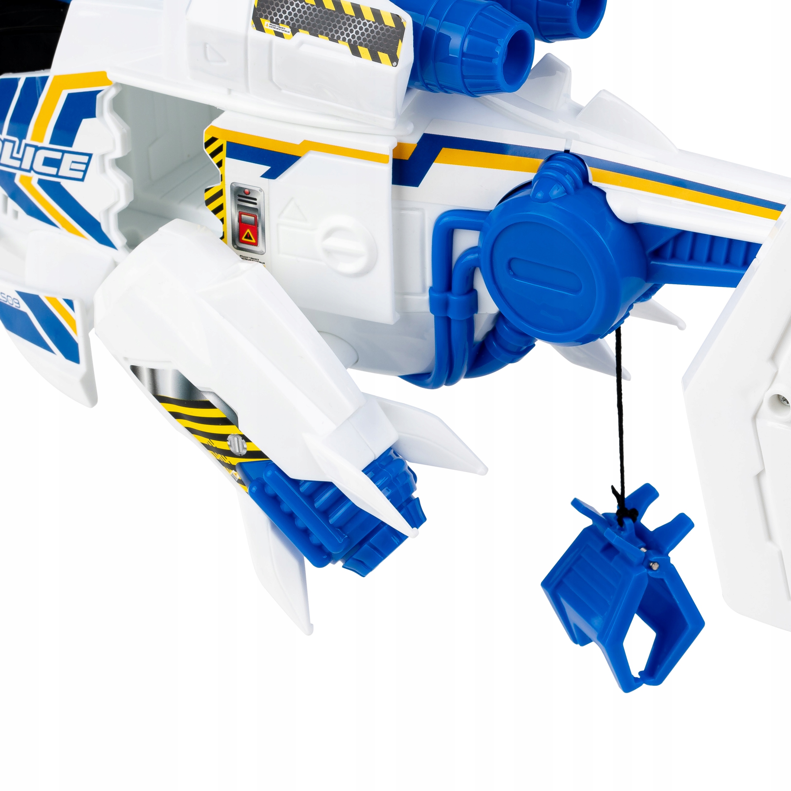 Helikopter policyjny do zadań specjalnych wyposażony został w ręcznie obracane elementy, które pobudzą wyobraźnię małego pilota: śmigło, przesuwane drzwi, opuszczaną szalupę ratunkową i dwa przekręcane silniki. Na dachu pojazdu znajduje się dodatkowo przycisk uruchamiający realistyczny odgłos silnika oraz muzykę, a także światełka.