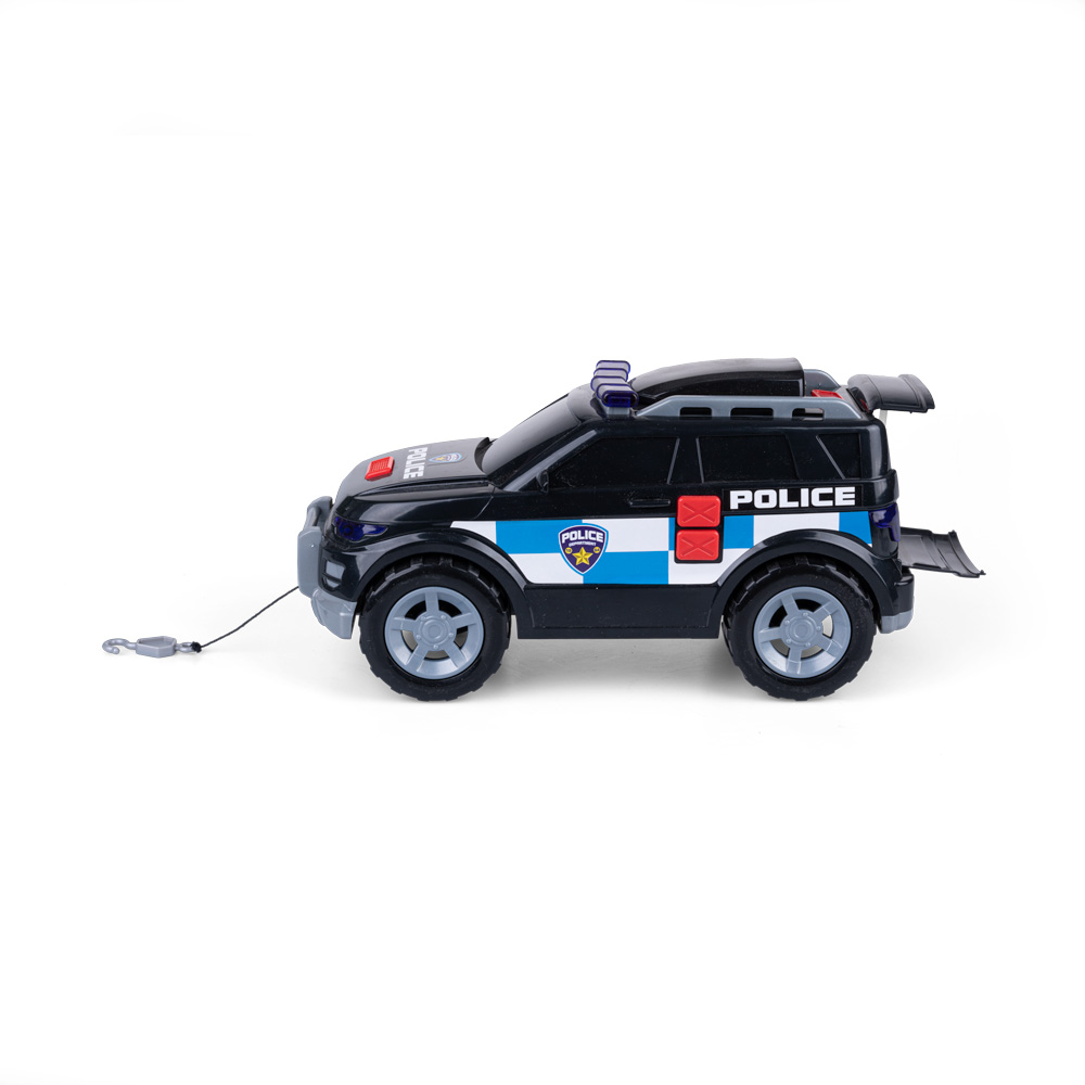 Na boku pojazdu umieszczone są 2 czerwone przyciski aktywujące realistyczne dźwięki i migające światełka. Pojazd posiada także otwierane tylne drzwi i wyciągany hak holowniczy.