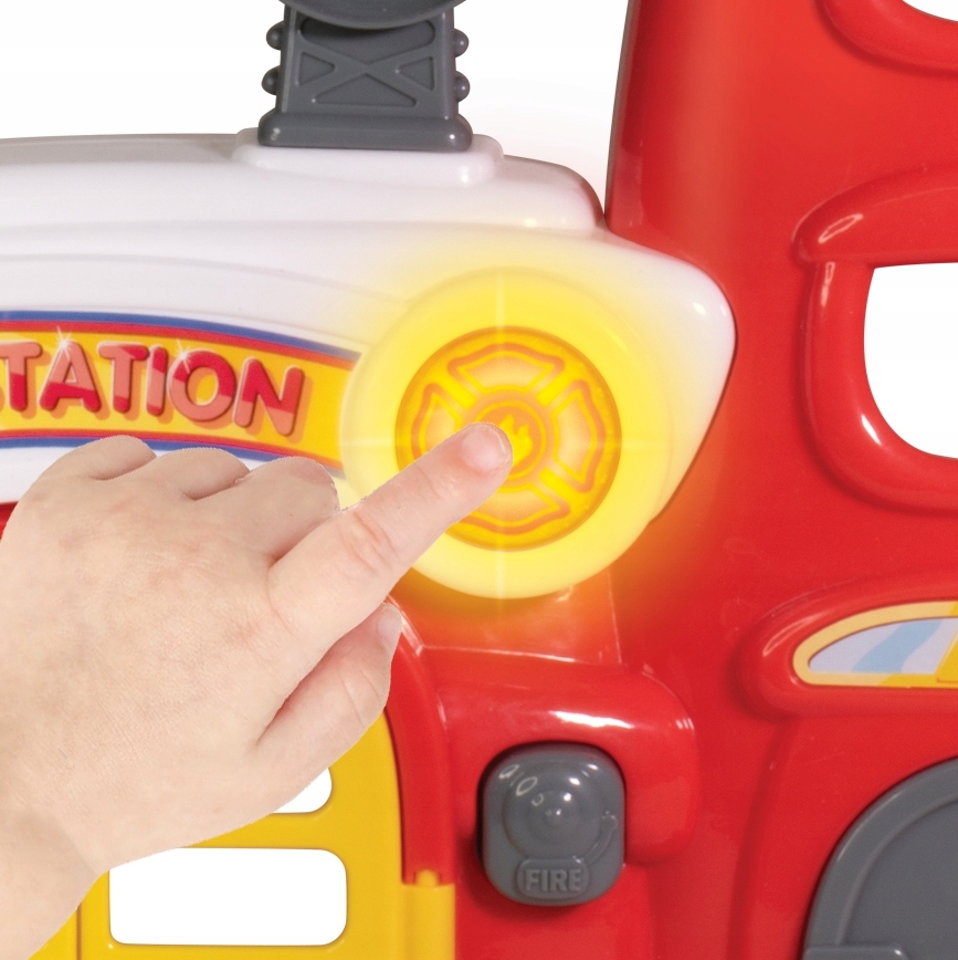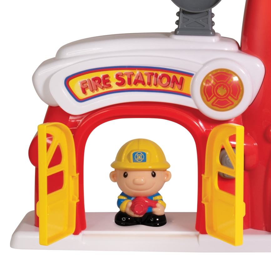 Przeżyj wspaniałą przygodę z zestawem figurek do zabawy w odgrywanie ról. Poza strażakami i ich dzielnym pieskiem – ratownikiem, znajdziesz tu stację strażaków, wóz strażacki, helikopter, a nawet hydrant. Stacja wyposażona jest w przycisk, uruchamiający lampkę i sygnał alarmowy. Specjalna winda umożliwia strażakom szybki zjazd na dół.