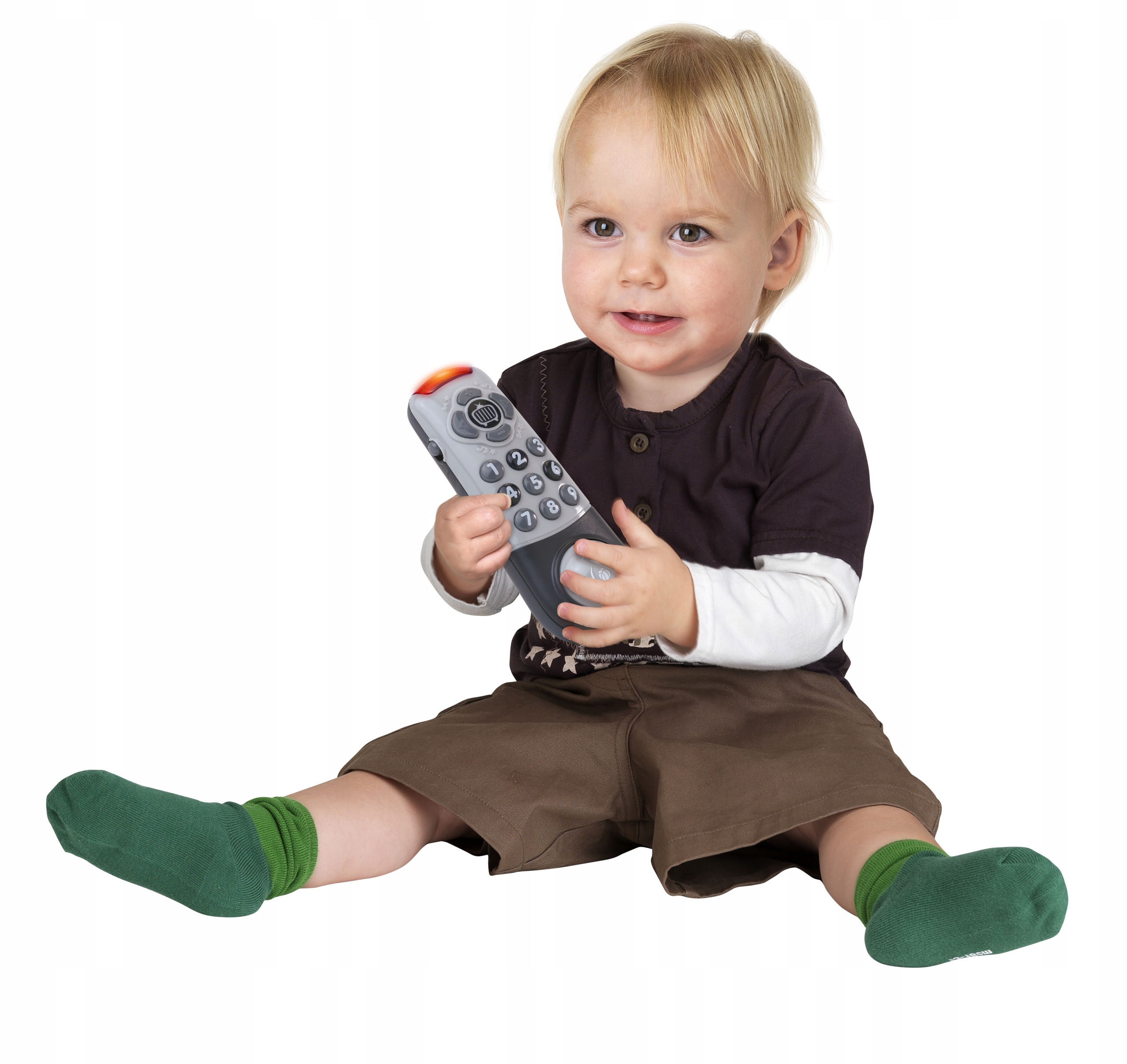 Zabawka posiada 2 funkcję do wyboru. Pierwsza uczy dziecko rozpoznawania cyferek oraz kierunków, druga daje możliwość przełączenia pilocika na język angielski.