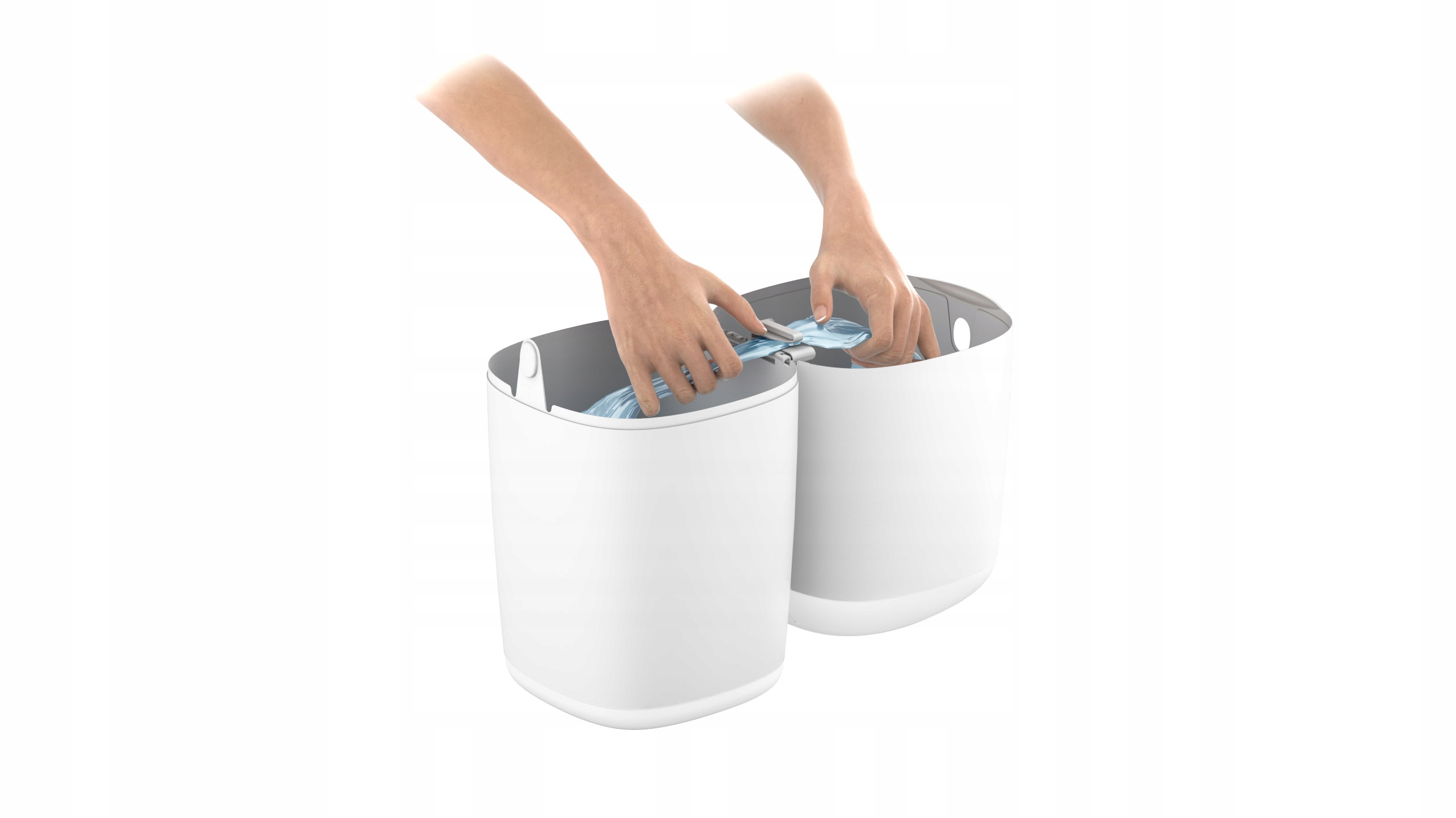 - Zabezpieczony nożyk wewnątrz pojemnika ułatwia odcinanie zużytego worka.