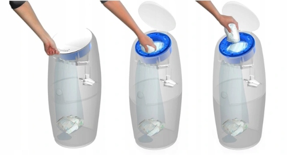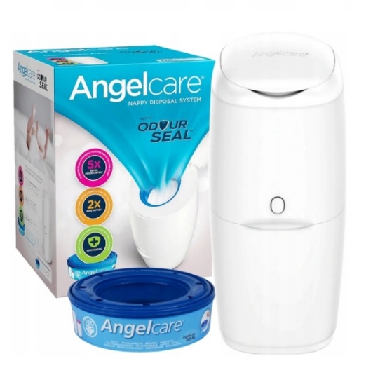 - Do pojemnika przeznaczone są specjalne wkłady Angelcare – każdy z wkładów mieści ok. 100-150 zużytych pieluszek (w zależności od wielkości pieluszek).