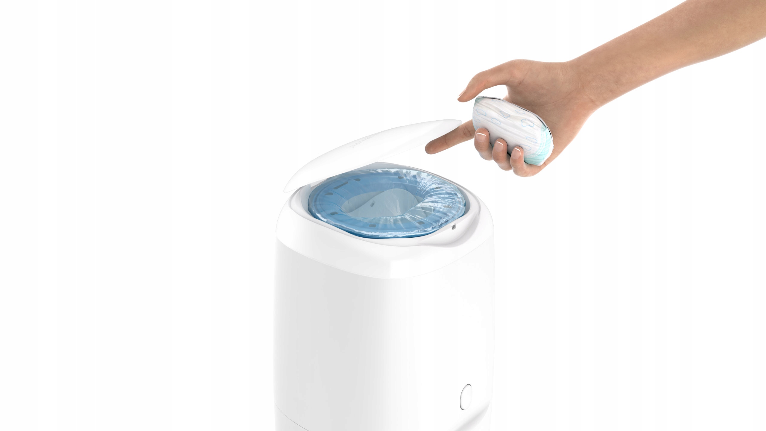 • Do pojemnika przeznaczone są specjalne wkłady Angelcare  – każdy z wkładów mieści ok. 100-150 zużytych pieluszek (w zależności od wielkości pieluszek).