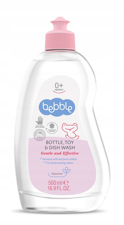 Twoja kolekcja butelek, smoczków, zabawek i akcesoriów dla dzieci, które można myć, zapewne rośnie z dnia na dzień. Podczas codziennych posiłków, zabawy i snu te przedmioty zawsze odnajdą drogę do buzi Twojego dziecka, a więc trzeba je często myć, by zawsze były gotowe do użycia. Bebble podaje pomocną dłoń w postaci płynu do mycia, który szybko czyści pozostałości jedzenia i mleka.