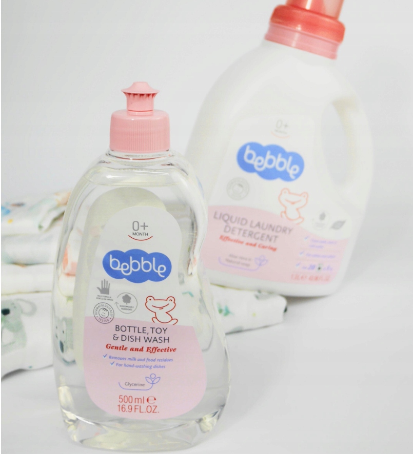 Należy myć dziecięce butelki, zabawki i akcesoria w roztworze 2-3ml płynu do mycia butelek, zabawek i naczyń Bebble na 1 litr ciepłej wody. Mocno zabrudzone naczynia lub przedmioty z zaschniętymi resztkami jedzenia lub mleka mogą być najpierw namoczone w takim roztworze. Po myciu należy wszystko dokładnie spłukać czystą wodą. Powinno się posiadać delikatny zmywak lub specjalną szczotkę, która będzie używana wyłącznie do akcesoriów dziecięcych.
