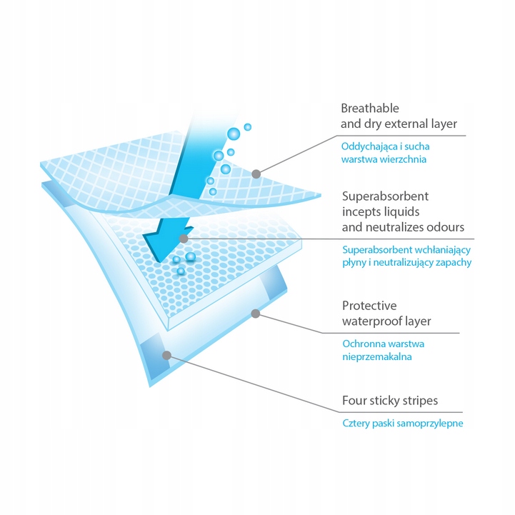 Nieprzemakalna warstwa ochronna i 4 stabilizujące paski samoprzylepne sprawią, że żadna sytuacja nie będzie niemiłą niespodzianką.