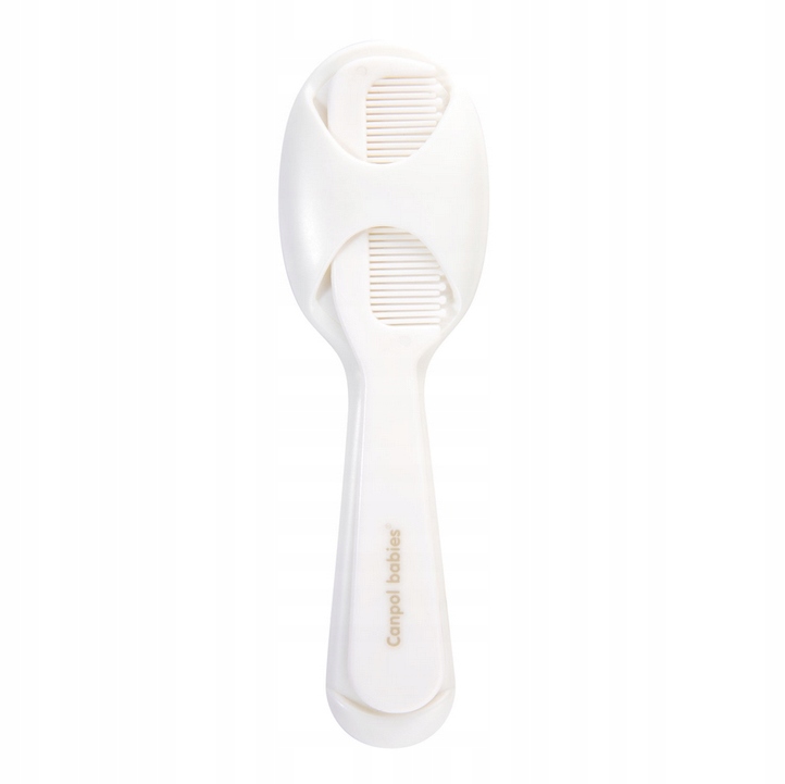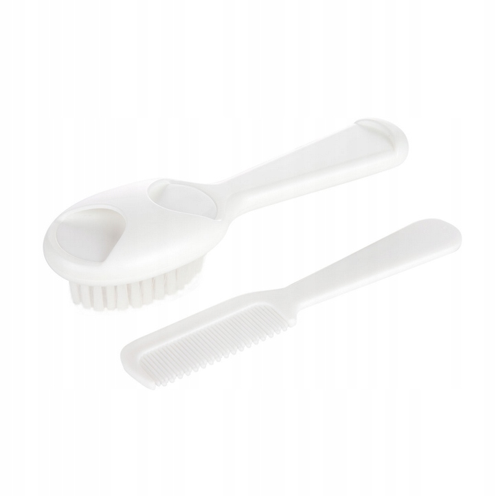 Szczotka i grzebień dla niemowląt to idealny zestaw do czesania pierwszych włosków i masażu główki dziecka. Zaokrąglone ząbki grzebienia nie podrażniają wrażliwej skóry, a syntetyczne włosie szczotki gwarantuje bezpieczną i przyjemną pielęgnację delikatnych włosków maluszka. Ergonomiczny kształt grzebienia i szczotki ułatwia wygodne użytkowanie, a specjalny schowek na grzebień pomoże w utrzymaniu porządku w akcesoriach maluszka.