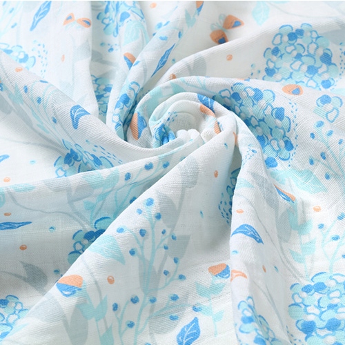 Muślin to tkanina oddychająca. Lekki splot włókien sprawia, że pieluszki przepuszczają powietrze. Także w czasie spaceru, kiedy użyjesz ich na przykład jako przewiewnego otulacza albo kocyka.