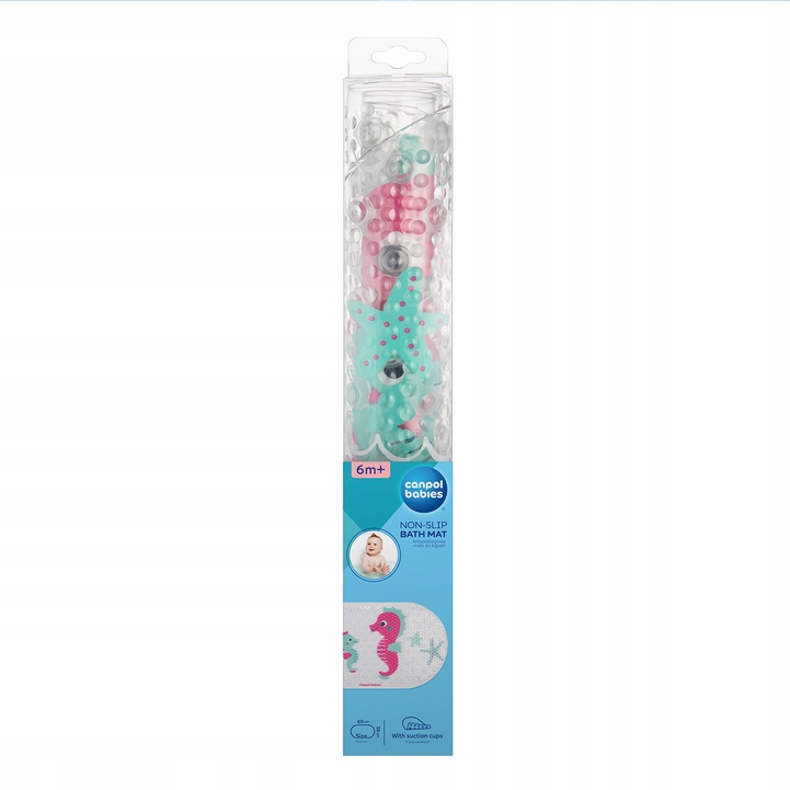 Praktyczna, antypoślizgowa mata do kąpieli LOVE&SEA z przyssawkami przeznaczona do użytku w wanienkach dziecięcych, dużych wannach i kabinach prysznicowych. Zapobiega poślizgnięciu się dziecka podczas kąpieli. Wykonana z wysokiej jakości gumy. Atrakcyjny wzór na macie zachęci dziecko do kąpieli. Wymiary maty: 69x38cm.
