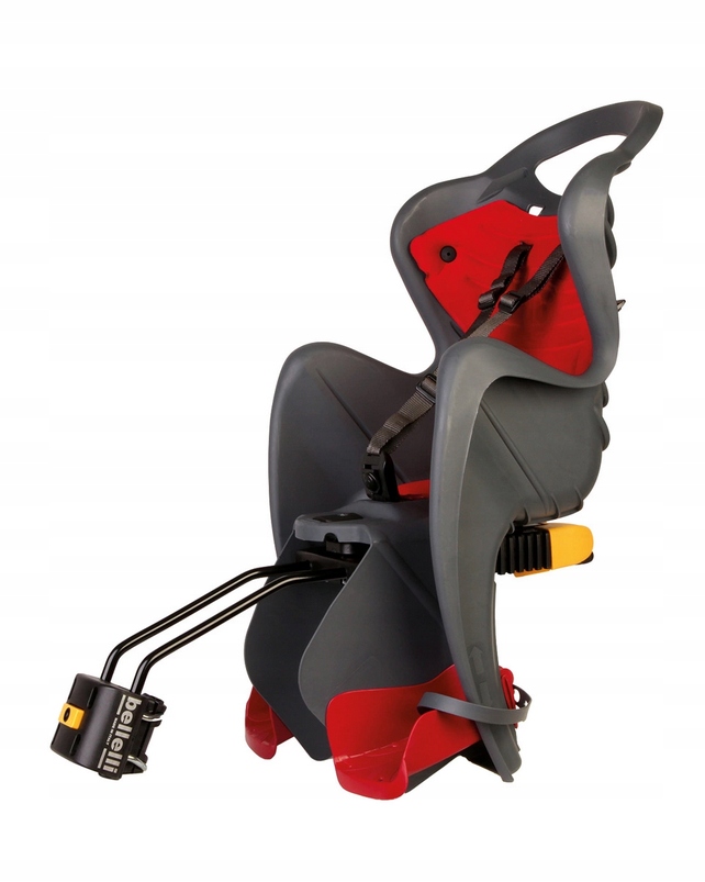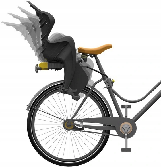 montaż na giętkim, stalowym pałąku, który doskonale amortyzuje wszelkie wstrząsy zapewniając dziecku wysoki komfort podczas wycieczek rowerowych