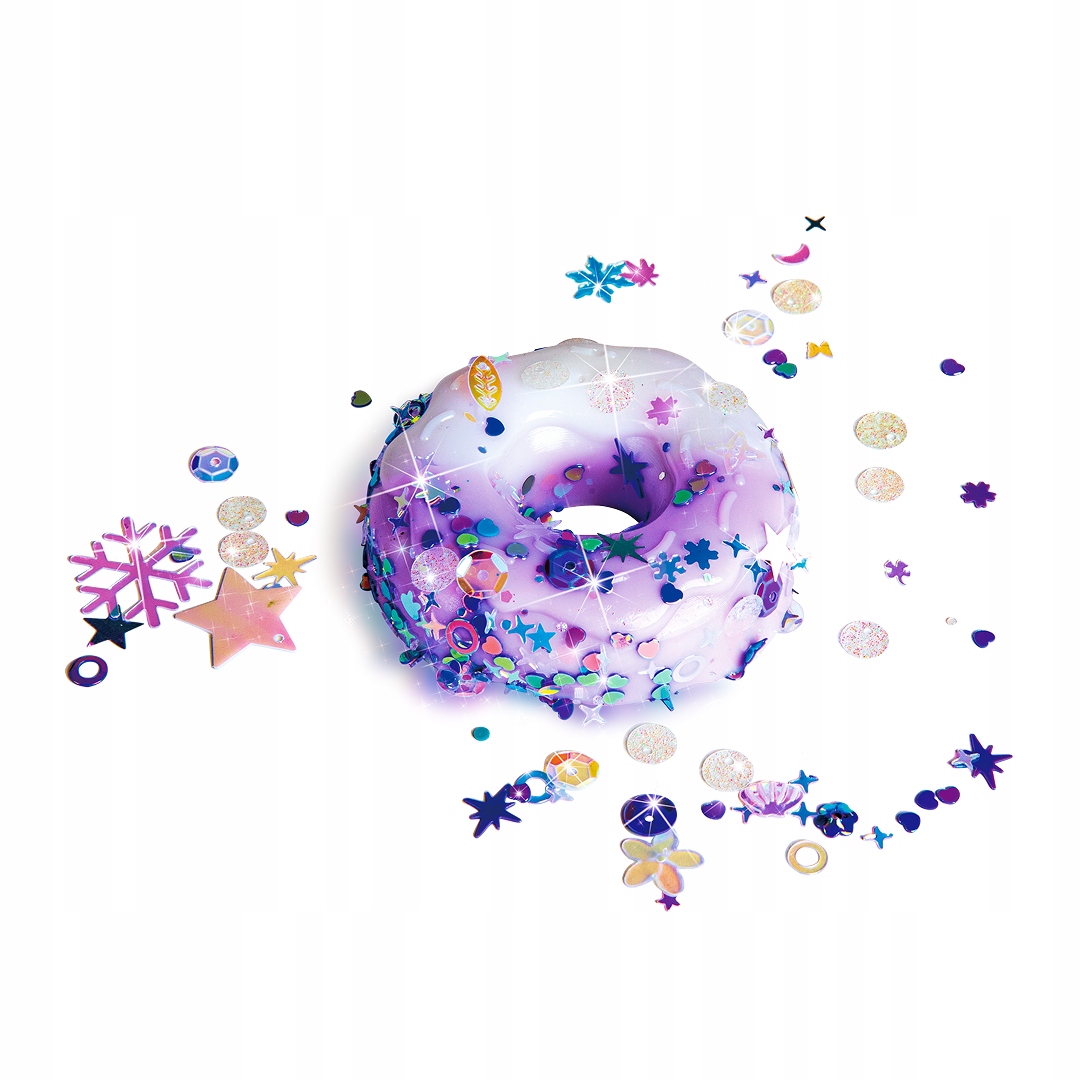 Kreatywny zestaw SQUISHY zawiera wszystko czego potrzeba, do wykonania własnego, kolorowego pączka, którego można zgniatać do woli. W tym celu należy połączyć ze sobą klejące masy, rozlać je do kubeczków i do każdego z nich dodać barwnik w innym kolorze, a następnie wlać tak przygotowane mikstury do pączkowej formy. Po całkowitym wyschnięciu, gotowego pączka można wyjąć z foremki, aby cieszyć się samodzielnie stworzonym squishy.