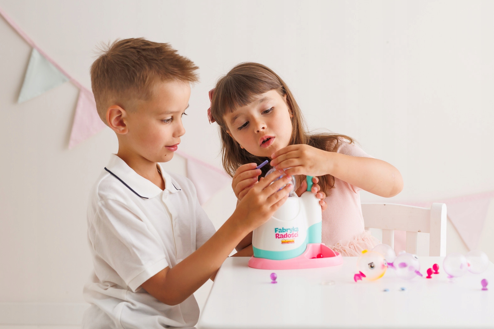 Ta odlotowa maszyna zapewni moc kreatywnej zabawy, i to bez baterii, kleju oraz podgrzewania. W zestawie znajdziesz wszystko, czego potrzeba, aby stworzyć kolorowe, balonowe stworki. Przy pomocy specjalnej maszynki nadmuchaj baloniki do zaznaczonego na podziałce poziomu, wyjmij je i połącz ze sobą w zabawne stworki-potworki. Dołączone do zestawu akcesoria, takie jak uszka, oczka czy skrzydełka, pozwolą ci ozdobić stworzone postacie, aby nadać im niepowtarzalnego wyglądu.