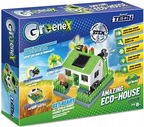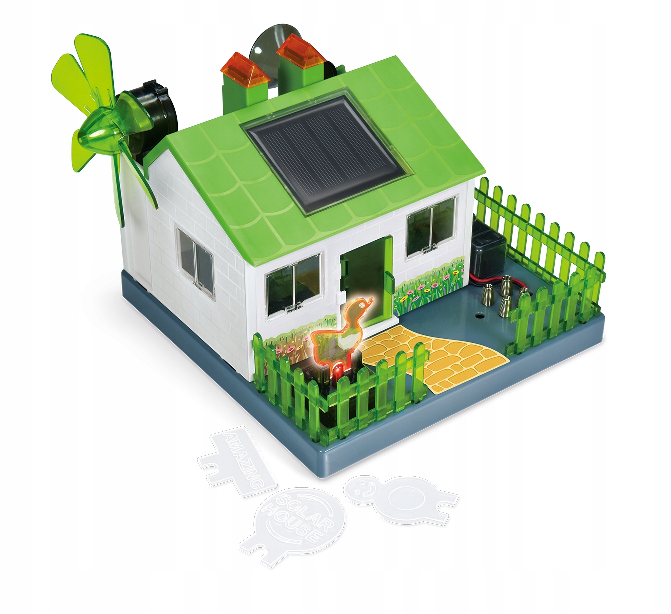 – zestaw pozwala na zbudowanie eko domu z solarnymi elementami: solarny wiatrak, solarny dzwonek do drzwi, solarny znak LED;