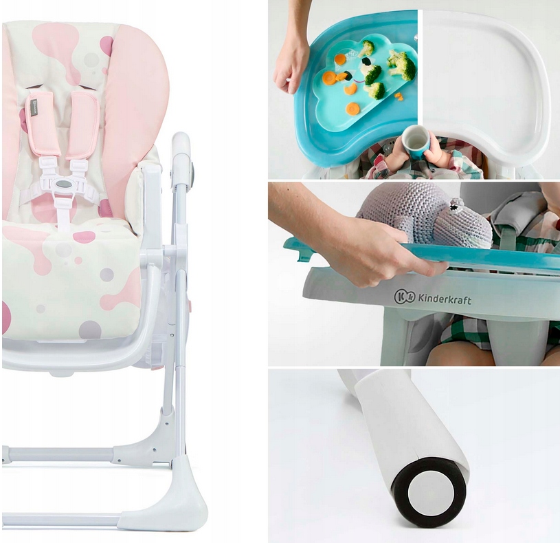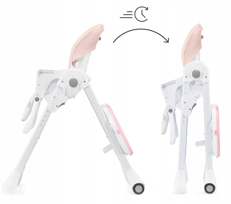 YUMMY złożysz w zaledwie 5 sekund – nie zajmie dużo miejsca w domu po skończonym posiłku. Krzesełko ma także gumowe kółeczka, ułatwiające przesuwanie krzesełka, a także wygodny uchwyt do przenoszenia na oparciu. Postawisz je gdzie tylko chcesz: złożone lub nie.