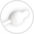 Kształt bawełnianej części patyczka z ogranicznikiem zapewnia bezpieczne użytkowanie.